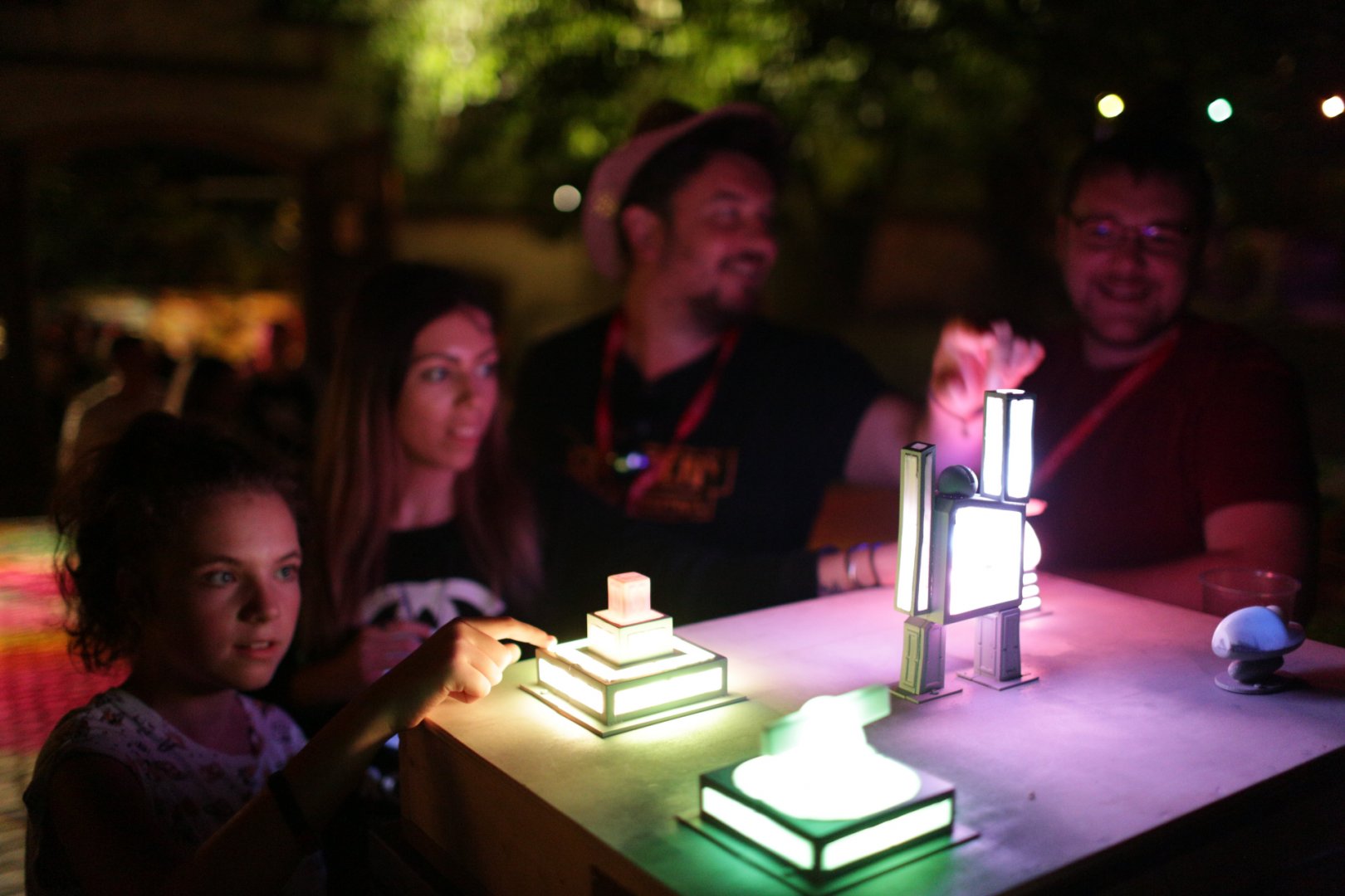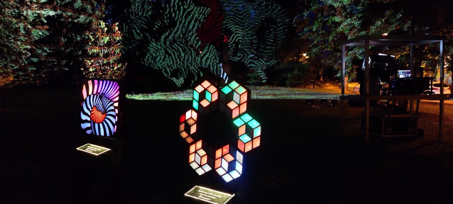 The 5 statues of the garden at Martyn–Lantos Museum were modeled and 3d printed. They had RGB lights in them and made touch sensitive. The touches controlled the projection on the real statues.